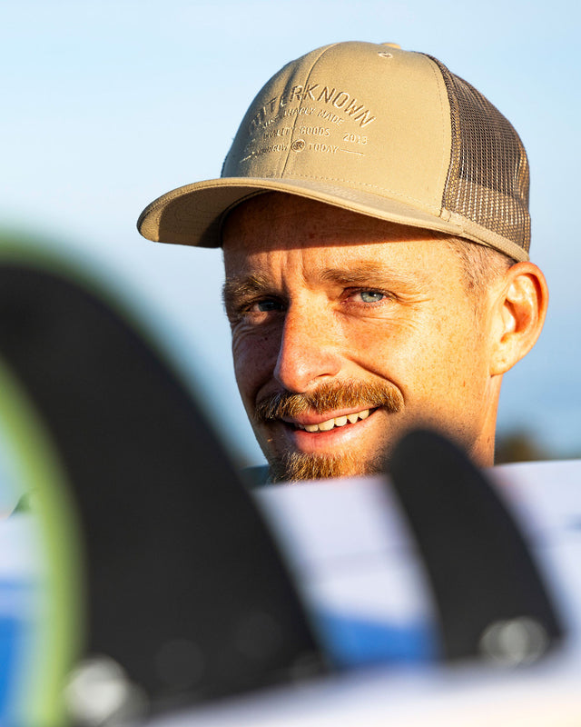 Nuestro logo Industrial Outerknown se ha convertido en todo un ícono para quienes aman el diseño y la tipografía. Pensamos que ya era hora de ponerlo en una gorra trucker limpia y clásica, hecha completamente con materiales reciclados.
