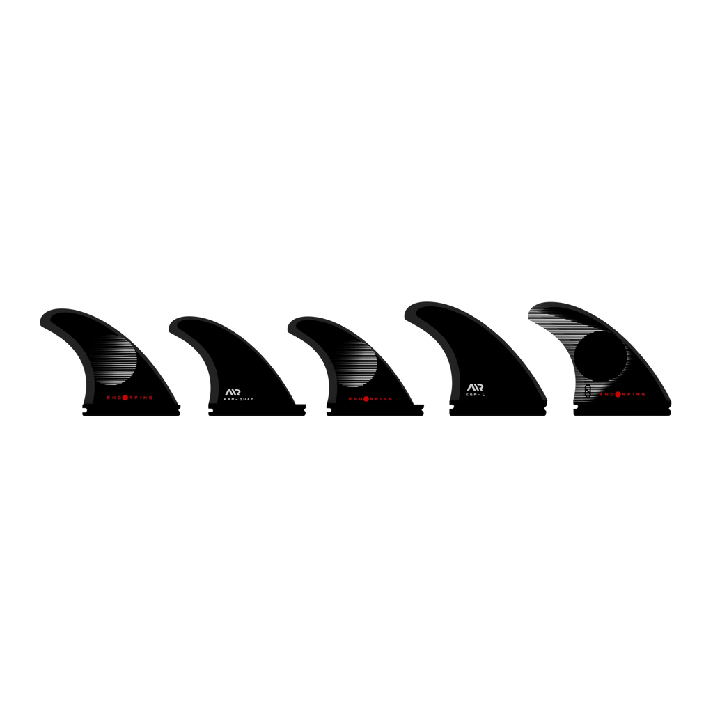 Set Endorfins KSR (Kelly Slater Rake): plantilla con más rake para maximizar agarre (hold) y generar drive, pensada para arcos amplios y control down-the-line.